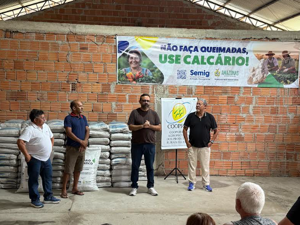 A Secretaria de Estado de Energia, Mineração e Gás (Semig), esteve no município de Itacoatiara (a 176 quilômetros de Manaus), no sábado (17/01), com o projeto “Não Faça Queimadas, Use Calcário!”, e entregou 6 toneladas de calcário dolomítico à Cooperativa Agropecuária dos Produtores Rurais da AM-010 (Coopram), localizada no quilômetro 143 da rodovia estadual. A ação beneficiará diretamente 150 agricultores da região.